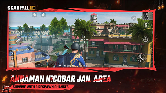 印度版和平精英(Scarfall 2.0)是一款热血精彩的吃鸡大逃杀玩法的手游,这款游戏以充满印度风情的战场为舞台,还创新性地加入了印度本土载具,玩家通过跳伞随机降落到战场之后,可以驾驶着各类交通工具开始探索,还需要与对手进行刺激的战斗,击倒所有的敌人并活到最后就能成功吃鸡。
