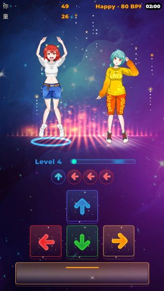 3、角色动作与音乐节拍深度绑定,不同难度下舞步复杂度递增,强化节奏代入感。