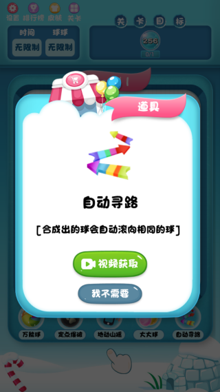 2.你可以通过看视频的方式获得道具,不想看视频就点击“我不需要”。