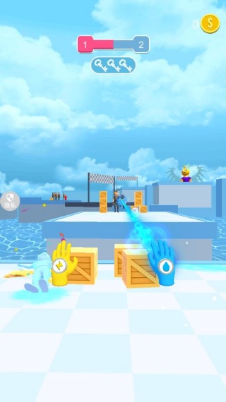 游戏中提供多种具备独特攻击方式与视觉特效的超能力手套,每种都代表一种自然或科技元素。例如激光手套可发射高能炽热光线,精准打击远处敌人;水枪手套则喷射高压水流,兼具控制与输出能力。玩家需熟练掌握各类手套的操作节奏与技能特性,才能在瞬息万变的战场中占据先机。