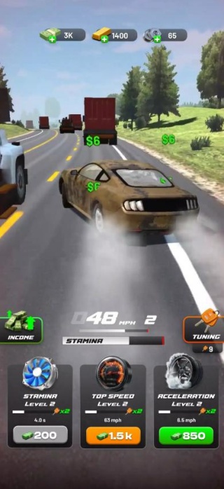 4、漂移即货币,比赛中漂移距离与角度直接转化为现金奖励,激励玩家精进技术。