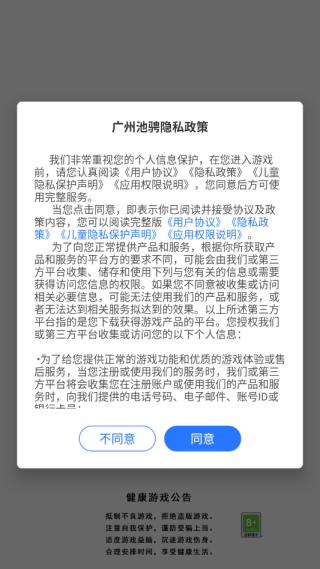 1.进入游戏前,你需要先同意相关的用户协议和隐私政策。