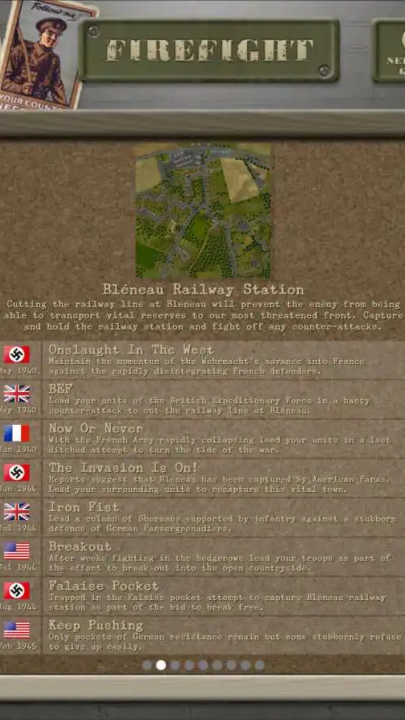 火力战是一款策略战争题材的手游,这款游戏采用俯视角的沙盒画面制作,在这里玩家将成为一位指挥官,在再现了历史上经典的战役和战场中玩家需要在不同的兵种中进行选择,每个兵种都有不同的战术作用,根据战场情况灵活调整部署,采取合适的策略就能击败敌军并赢得胜利。