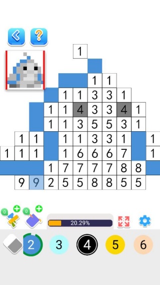 3、点击下方的数字,即可进行涂色;