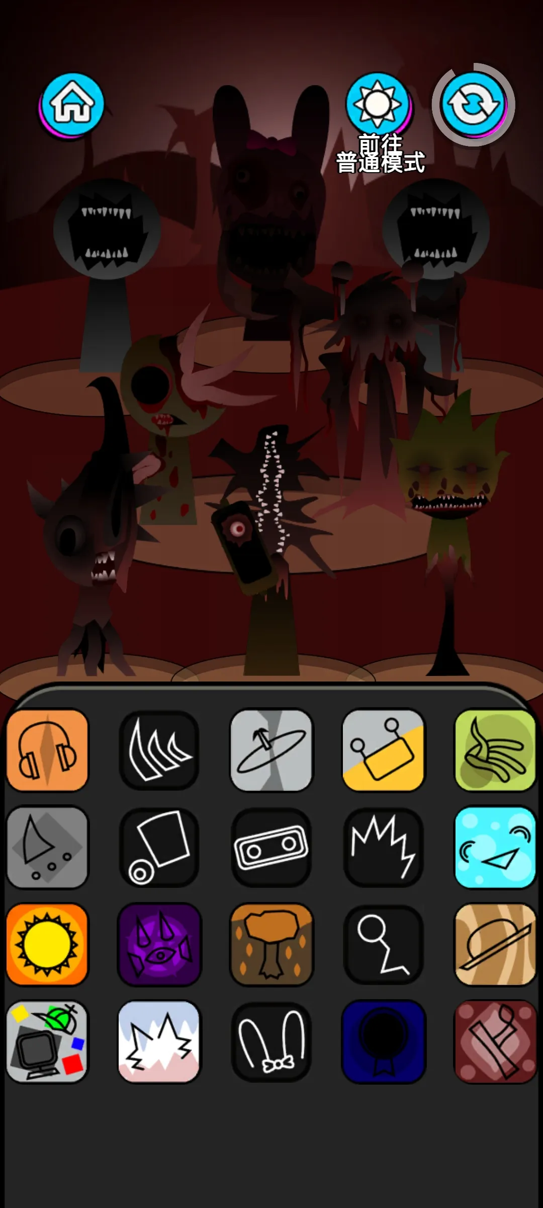 节奏盒子2恐怖节拍是一款有着惊悚恐怖元素的节奏闯关玩法的手游,有着扭曲的人物、化妆怪异的角色,在这款游戏中玩家可以在丰富多样的模式和关卡中进行选择,在经典的下落式点击操作下开始挑战,跟随着音乐的节奏正确的点击就能获得相应的得分,享受音乐的魅力并完成闯关。