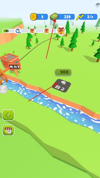 1、进入游戏,左右移动屏幕,去拾取标志1的钱财,让你拥有起始资金;