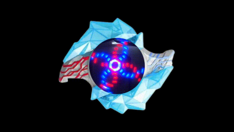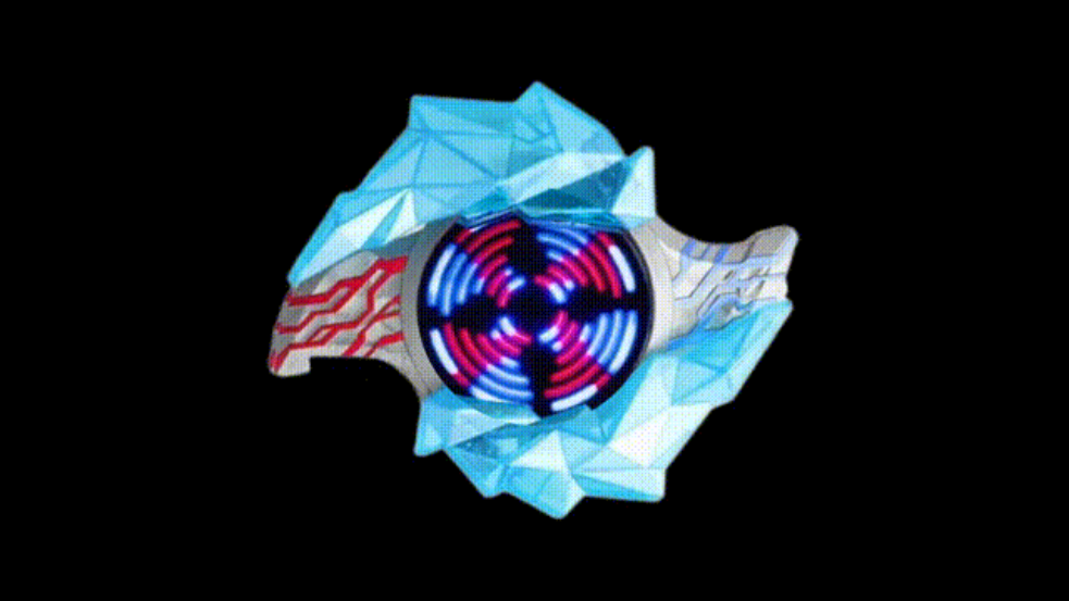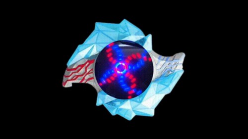 5、变身过程中,中间的水晶会展开露出显示屏,出现红色和蓝色圆圈旋转,不同的晶石特效都不一样的。