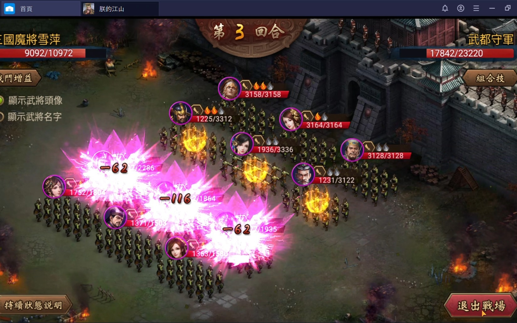 2、招募三国名将,自由搭配近70种技能打造强力阵容。
