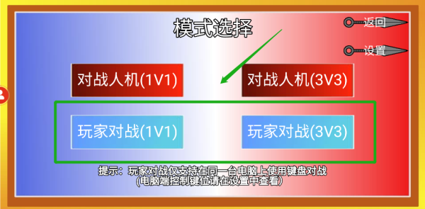 2、根据需求可选择1v1或是3v3。