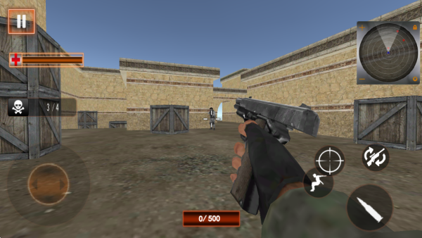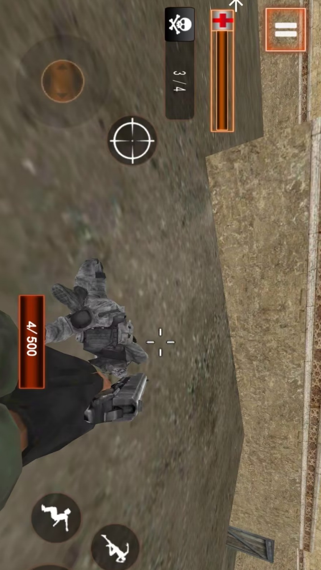 2、第一人视角射击沿路的敌人,寻找隐蔽的位置进行躲藏,射击敌人,完成本关的任务。