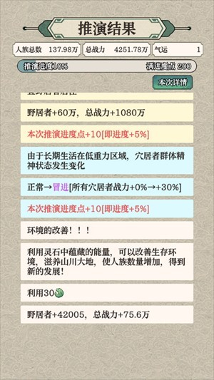 3、花费收集好的材料,就可以开始人类命运的推演;
