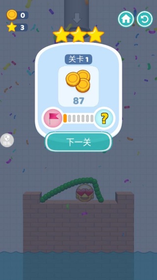 4、成功坚持,即可顺利过关,赚取金币,开启新的挑战。
