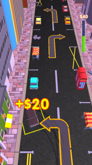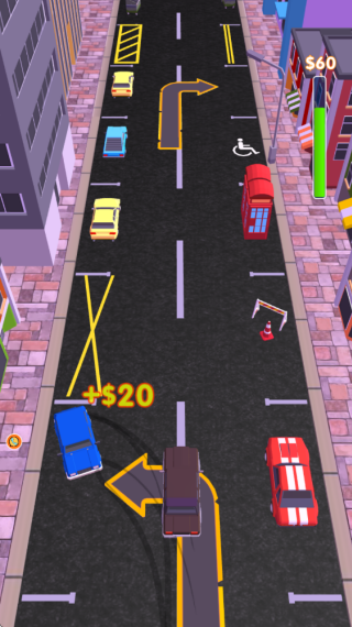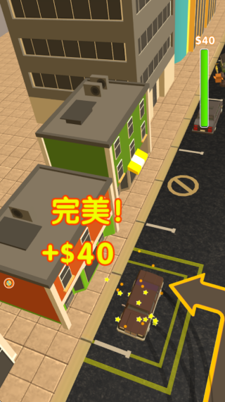 4、在城市的街道上快速的移动,成功的停在指定的车位上,解锁新的车辆。