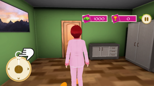 1、进入游戏,点击选择角色和关卡,开始模拟高中少女的生活,点击移动主角。