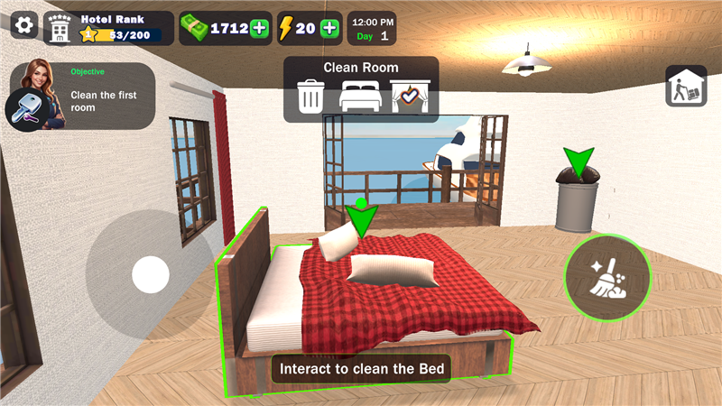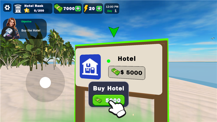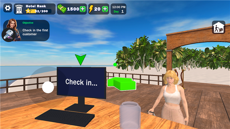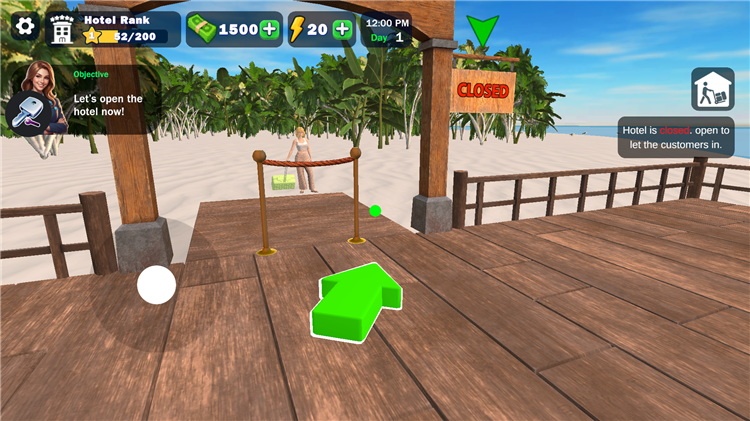 从收集资源开始,自主规划酒店布局,打造吸引眼球的接待大厅与客房区域。