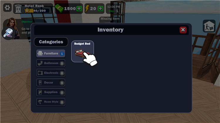 2、通过不断购买各种类型的家具和装饰品,玩家可以改变房间风格,提高整体环境得分,让客人有宾至如归的感觉。