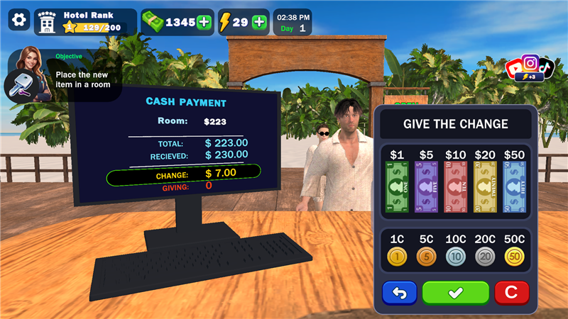 通过完成指定任务可获得金币与道具奖励,提升酒店运营效率与规模。
