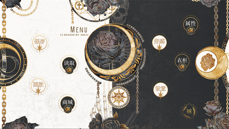 2、进入主界面后点击右上角菜单按钮,可使用保存、读取、回放、商城、好感度、属性查看等功能。