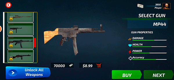 6、不喜欢这把枪,那就点击“next”换一把,这把感觉更牛比一点