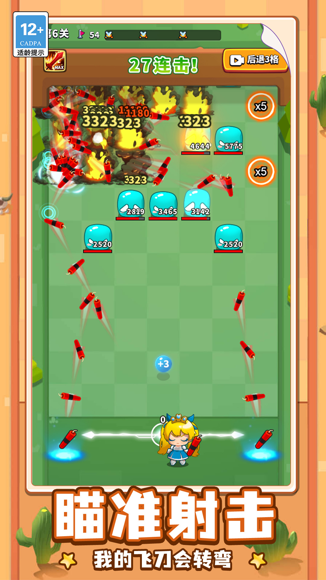 2、使用好飞刀可以射击,掌握好射击的方向,一次射击大量的怪物,获取丰富的奖励。