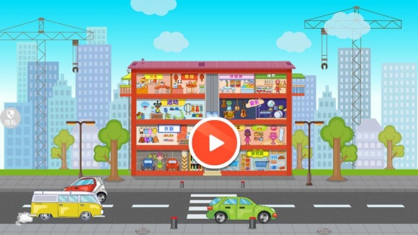 1、采用清新可爱的卡通风格,以百货商店为背景,营造充满童趣的虚拟世界,吸引宝宝注意力;