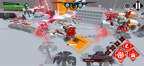 机械恐龙城市粉碎是一款以摧毁和破坏为主题的手游,在这款游戏中玩家可以操控一个机械恐龙前往城市中进行破坏,在毁灭各种各样的建筑物和设施之后就能获得奖励,可以用来解锁先进的DNA、重型装甲和毁灭性武器,在升级强化机械恐龙之后,就能前往有着更多防御的城市尽情毁灭。