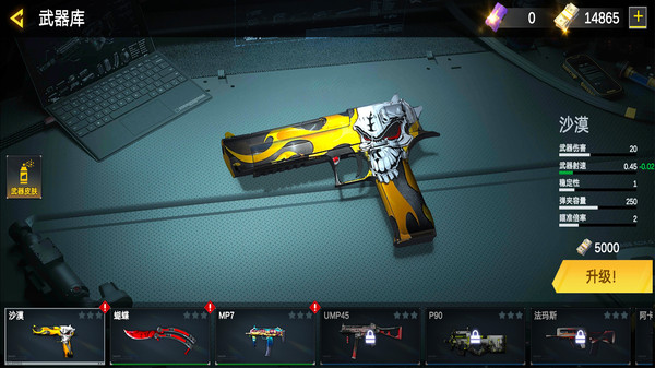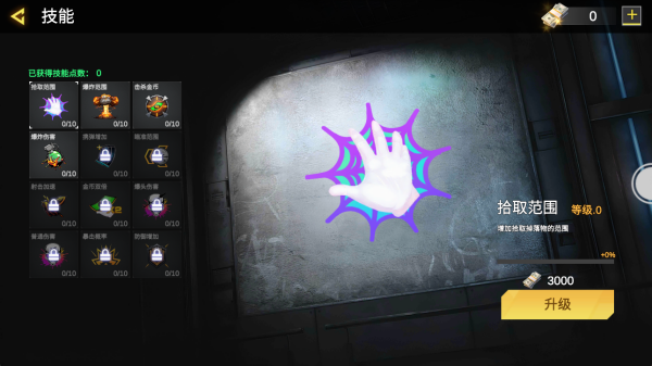 2、游戏中不仅拥有热血的枪战,还能对技能进行升级,加入拾取强化击杀金币等技能玩法。