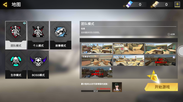 3、涵盖团队模式、个人模式、故事模式等五个模式选择,每个模式拥有多个地图场景设定。
