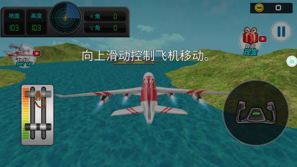 4、向上滑动控制飞机移动,左右飞行欣赏美好风景。