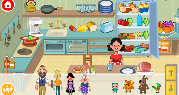 2.游戏主打轻松无压力的游玩体验,无复杂任务与失败机制,孩子可自由在虚拟家庭场景中探索互动与创造。