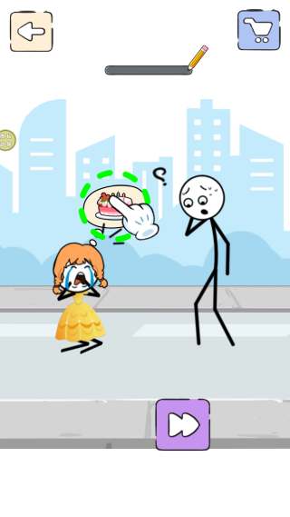 2、用手指在屏幕上滑动,为火柴人画出前进的道路。