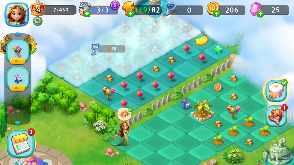 合并天空岛冒险是一款充满奇幻色彩与策略挑战的益智冒险游戏,它将带你进入一个由漂浮岛屿组成的奇妙世界。在这个被神秘风暴摧毁的破碎群岛中,玩家将扮演勇敢的女冒险家莱娅,运用独特的合并魔法逐步修复这片失落的天堂。游戏不仅拥有令人惊叹的视觉设计,还融入了丰富的故事情节——莱娅的亲人在这场灾难中被分散到各个角落,你需要通过智慧和策略帮助她重建家园并找回失散的家人。
