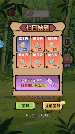 1、进入游戏,先签到,可以领取解锁券,让你无需看视频就能通玩全场;