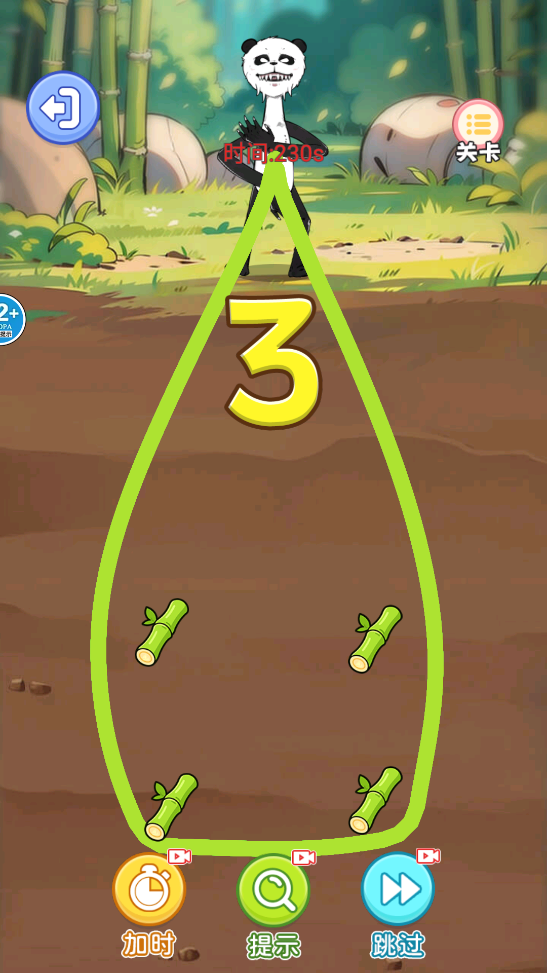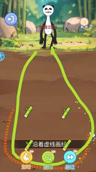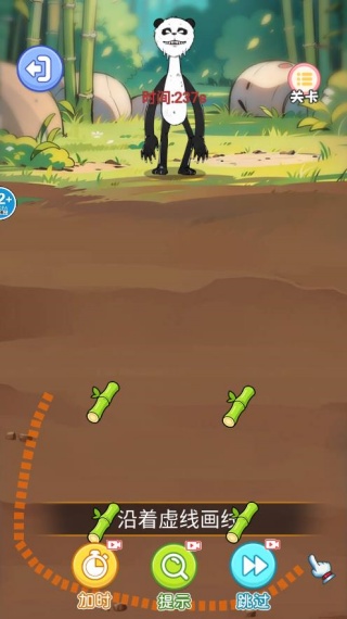 2、任务目标设置限时收集竹子、解救被困熊猫同伴等目标,结合关卡进度逐步增加难度;