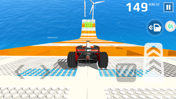 3、左侧移动方向,右侧控制油门刹车,在赛道上驰骋,顺利到达终点即可过关。
