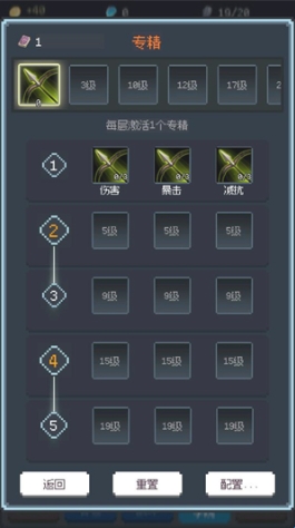 5、消灭怪物积累一定经验后就可以升级,升级可以获得技能点数,点击学院按钮然后点击技能强化就可以强化不同的技能了。