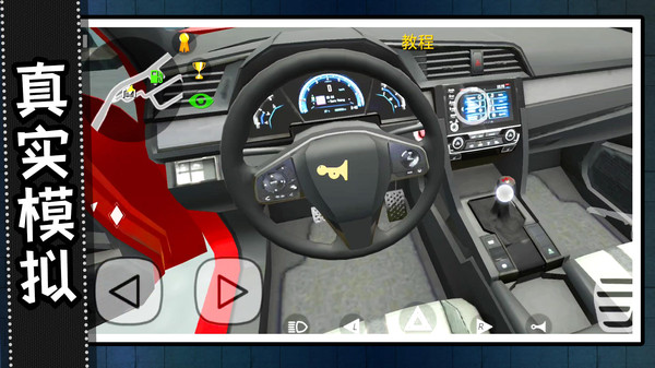 1、采用虚拟方向盘和踏板控制,支持灵敏度自定义。手动挡模式可体验换挡乐趣,自动挡适合新手快速上手。