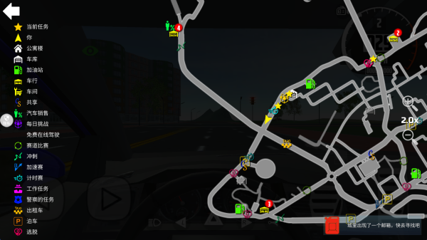 3、通过左上方地图点击打开,玩家可以查看当前位置,以及加油站车库等详细地点。