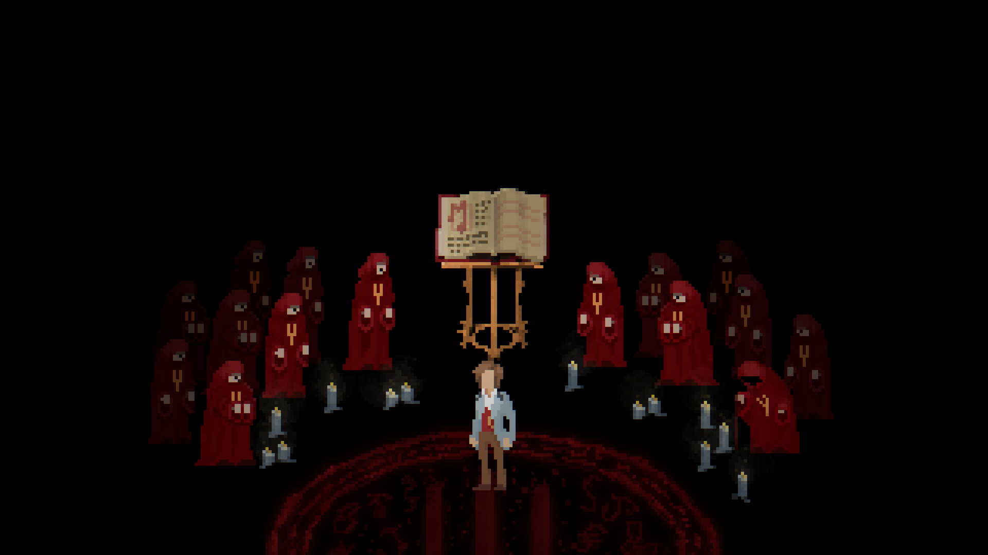 通过像素画面与音效设计的结合,游戏构建出压抑而神秘的修道院场景。
