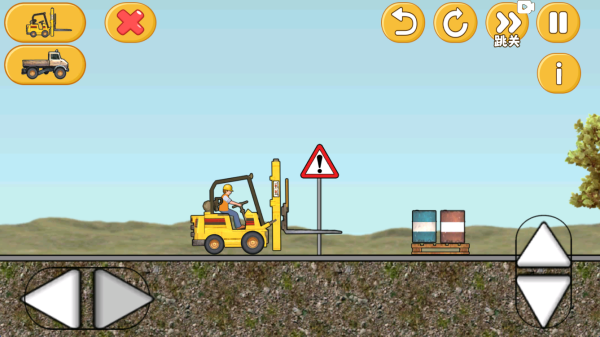 2、根据任务提示来完成关卡的任务挑战,左侧按键控制车辆移动,右侧控制升降。