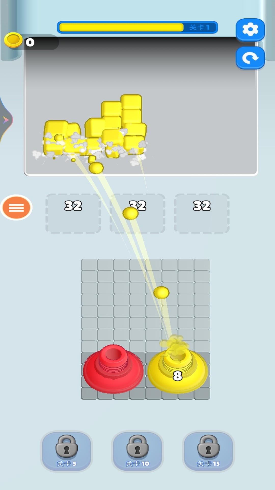 玩家需操控一颗初始弹球,使其在场景中不断弹射,撞击带有数字标识的小球。每次成功撞击都会使目标小球上的数字减1,当数字归零时,该小球即被消除。随着关卡推进,障碍布局与小球分布愈发复杂,考验你对角度、力度与反弹路径的精准把控。