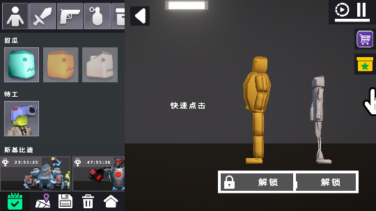 甜瓜游戏盒是一款高自由的沙盒模拟对战玩法的手游,这款游戏采用2D画面制作,在这里玩家可以在丰富多样的模式中进行选择,在简单的操作模式下就能控制着不同类型的角色开始行动,需要在各种各样的场景中发挥独特的力量进行战斗,尽情的释放各种攻击,通过破坏来发泄压力。