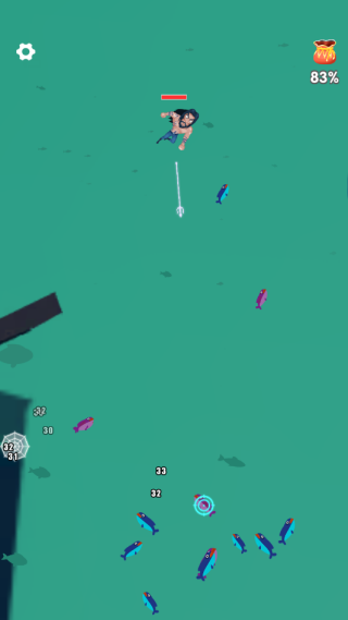 2、在你的周围会不时出现鱼儿,你需要不断的射杀它们。