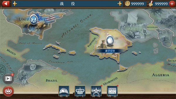 2、而战役模式中,下方的四个图标,根据欧五的经验,应当是将领,公主,科技,物品