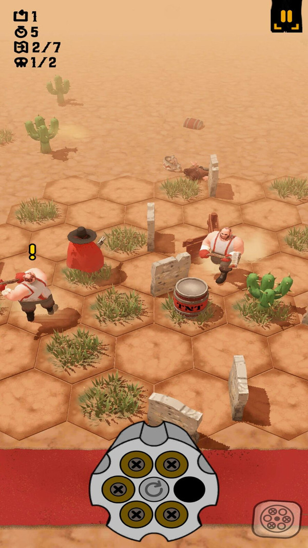 1、玩家可以向身边的格子进行移动,利用左轮来射击对应方向敌人。