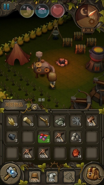 2、白天随意,晚上必须浪。(守家是前几天可以玩玩,后面出boss带一群小怪难度太大,防御塔输出有点坑,消耗太大,最好是在野外借助非主动怪帮忙打。同时远离家里怪不会打家。)同时因为晚上夜魔出来的时候,游戏有点卡频,注意按住方向不动,不遇到挡路的基本没事。
