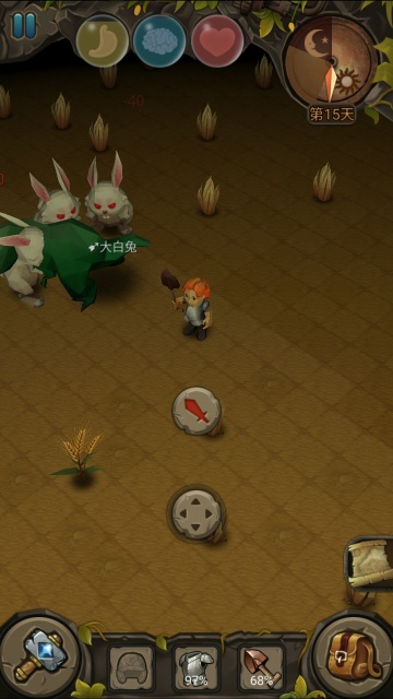 1、前五天,第一天采集木头,树枝,草,小石头,出科技,石器科技,工具四种通通做个,第一次必须靠近科技做。然后跑图,找到第一层有猫的沙漠,拿两张猫的皮。这个可以拉蝎子打猫,或者出个武器自己打。两步一跑。必须在第五天前做出帐篷,解决智障问题。