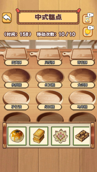 4、选择中式糕点这个关卡,你需要将所有的糕点进行正确收纳放置才能完成闯关哦。
