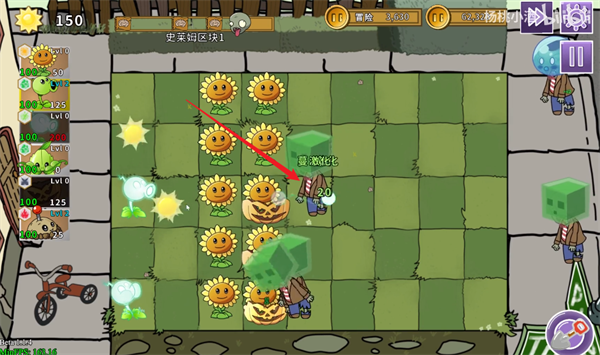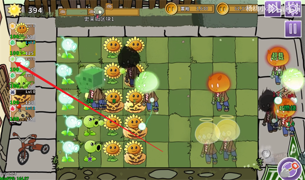 3、当僵尸开始出现时,就可以种植攻击型植物,对其进行防御和反击。