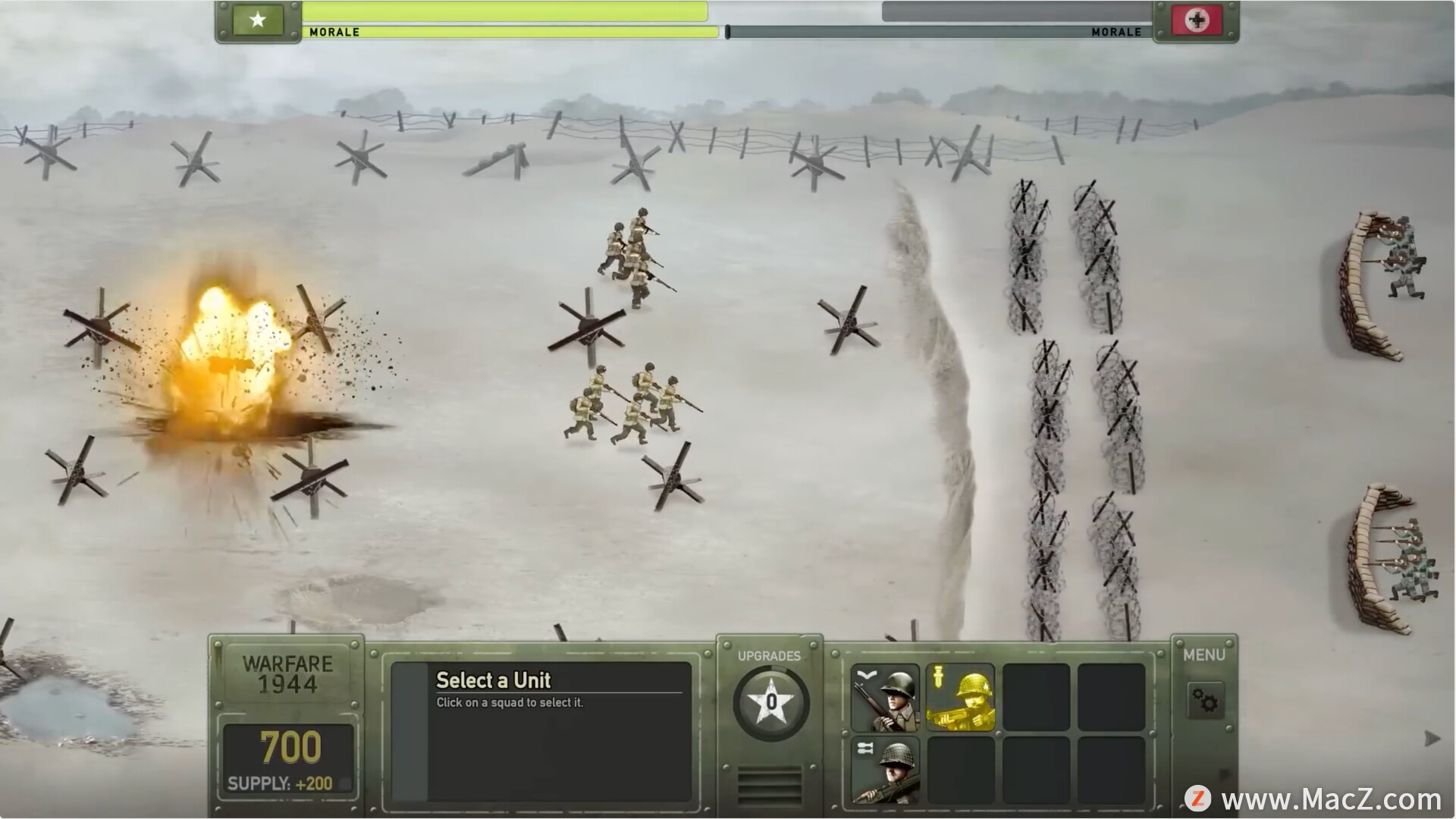 4、然后点击确定,就能进入游戏主界面,在这里既能升级自己的单位兵种,又能选择关卡开始挑战。